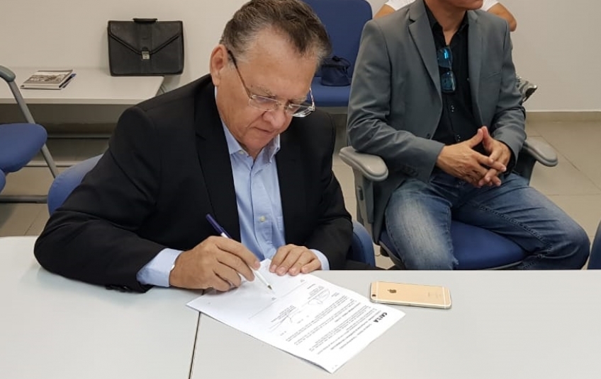 O prefeito de Santana do Ipanema, Isnaldo Bulhões, assinou na manhã desta terça-feira (24), o contrato de repasse para construção da barragem do João Gomes. A assinatura aconteceu na Caixa Econômica Federal, em Maceió. Estiveram presentes o Gerente de Governo da Caixa, Sandro Pepe, o engenheiro civil, Francisco de Assis, o arquiteto e urbanista, Alexandre Scala e o Engenheiro civil da caixa, Jorlan Pereira.